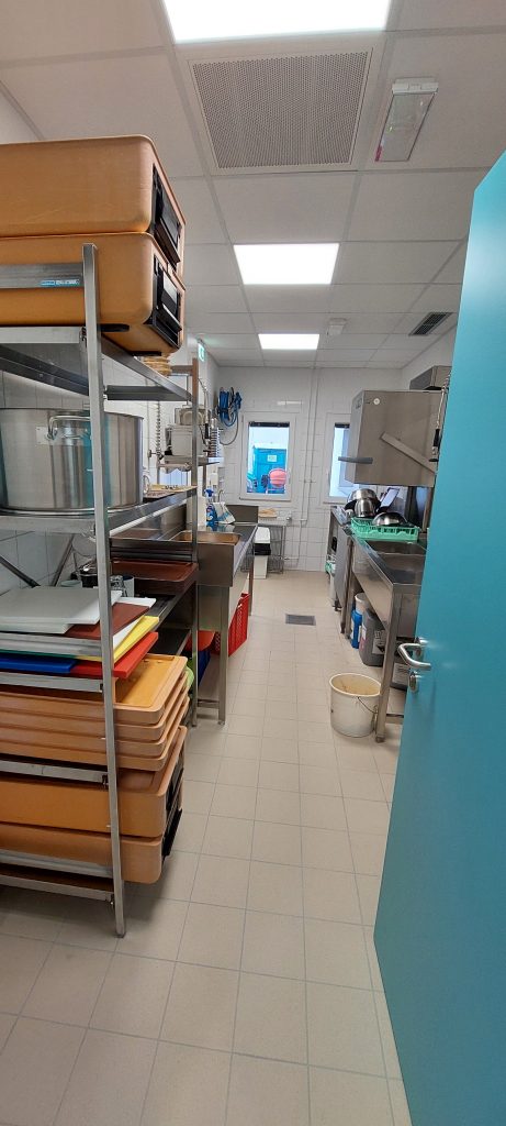 Mesece so naš vsakdan spremljali zvoki prenove. Gradbinci so najprej pogumno posegli v obstoječo zasnovo, odstranili dotrajane elemente in celo nekatere stene, nato pa je pred našimi očmi začela nastajati nova podoba. Zrasla je sodobno zasnovana kuhinja, opremljena z dvigalom in učinkovitim prezračevanjem, ki zagotavlja varne in prijetne pogoje za delo. V prostorih nekdanje pralnice je zaživela prostorna, svetla jedilnica – nov skupni prostor srečevanja, druženja in toplih obrokov.