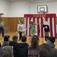 Klovni Društva Rdeči noski, so med 17. in 21. novembrom 2025 prišli izvajat delavnice cirkuških dejavnosti. V ponedeljek smo se vsi predstavili, da so vodje izvedeli naša imena. Na delavnicah smo izvajali cirkuške dejavnosti kot so npr. diabolo, flowerstick, trakovi, ptički za ravnotežje, žongliranje s kegli, žongliranje z žogicami, itd. Poleg tega smo se igrali …