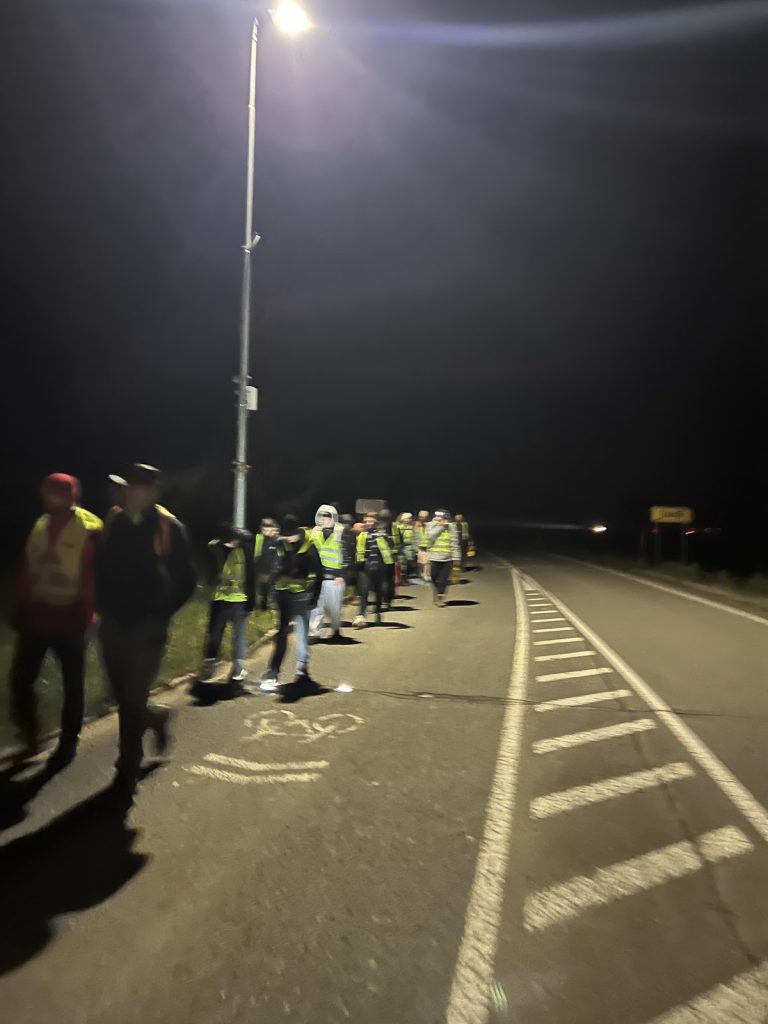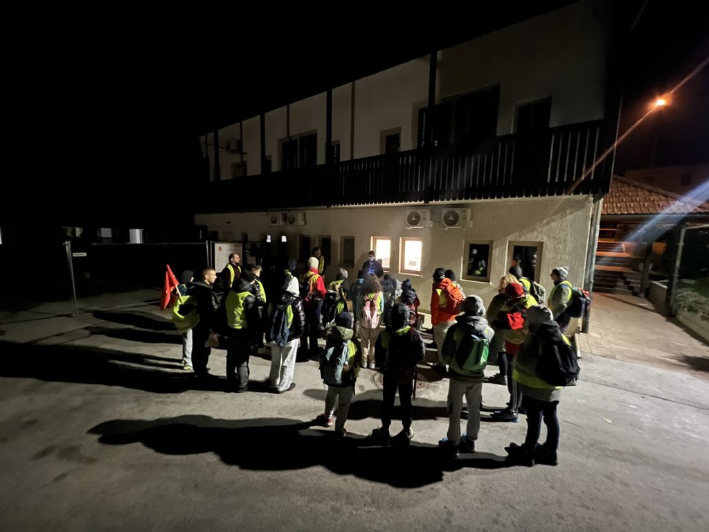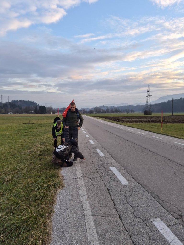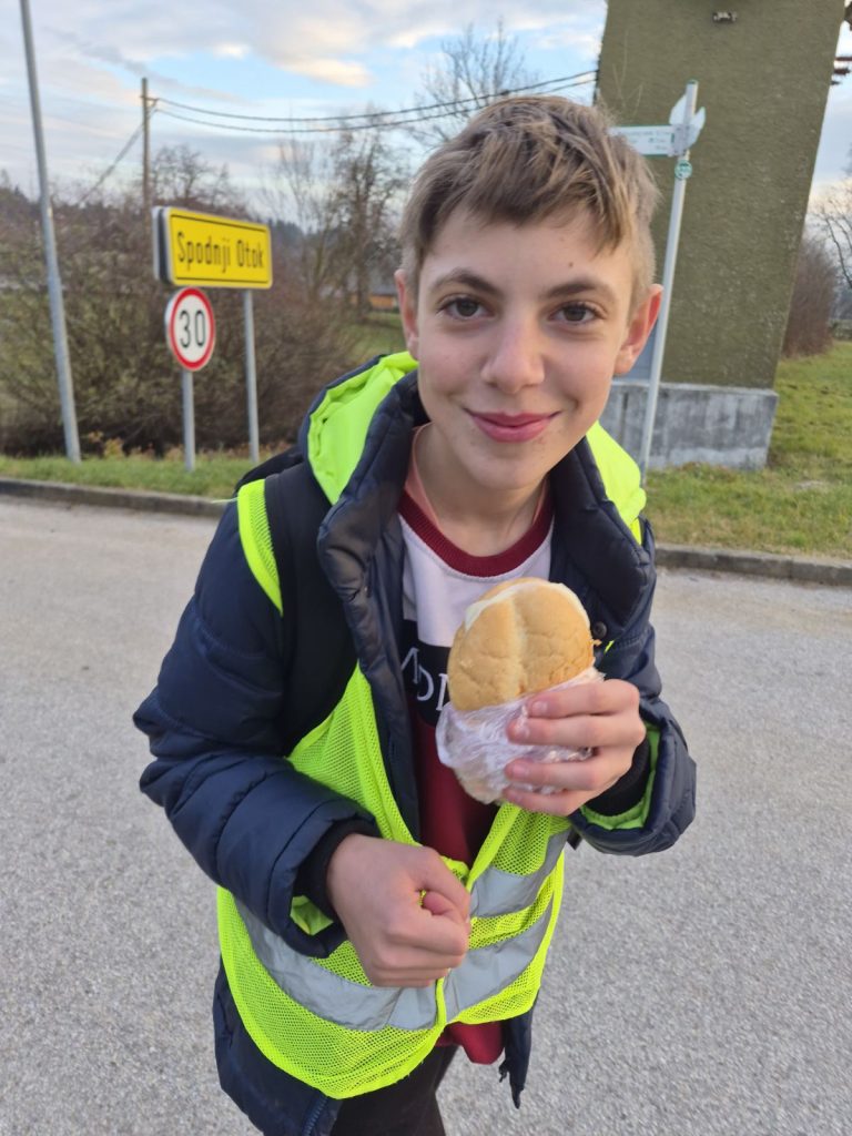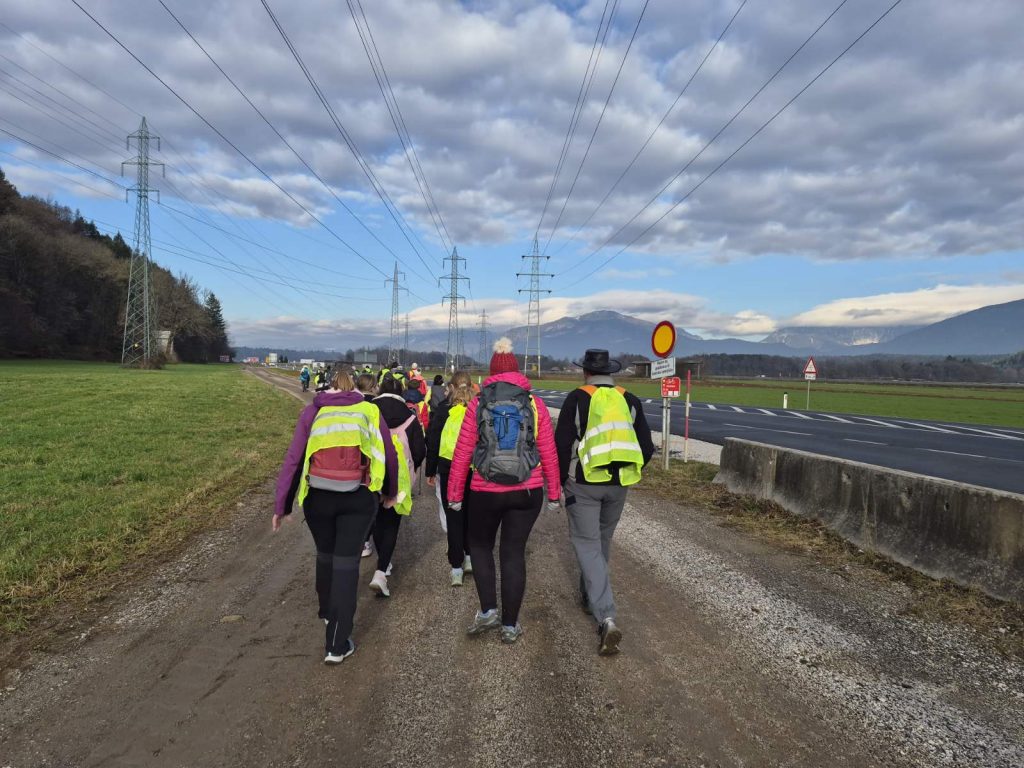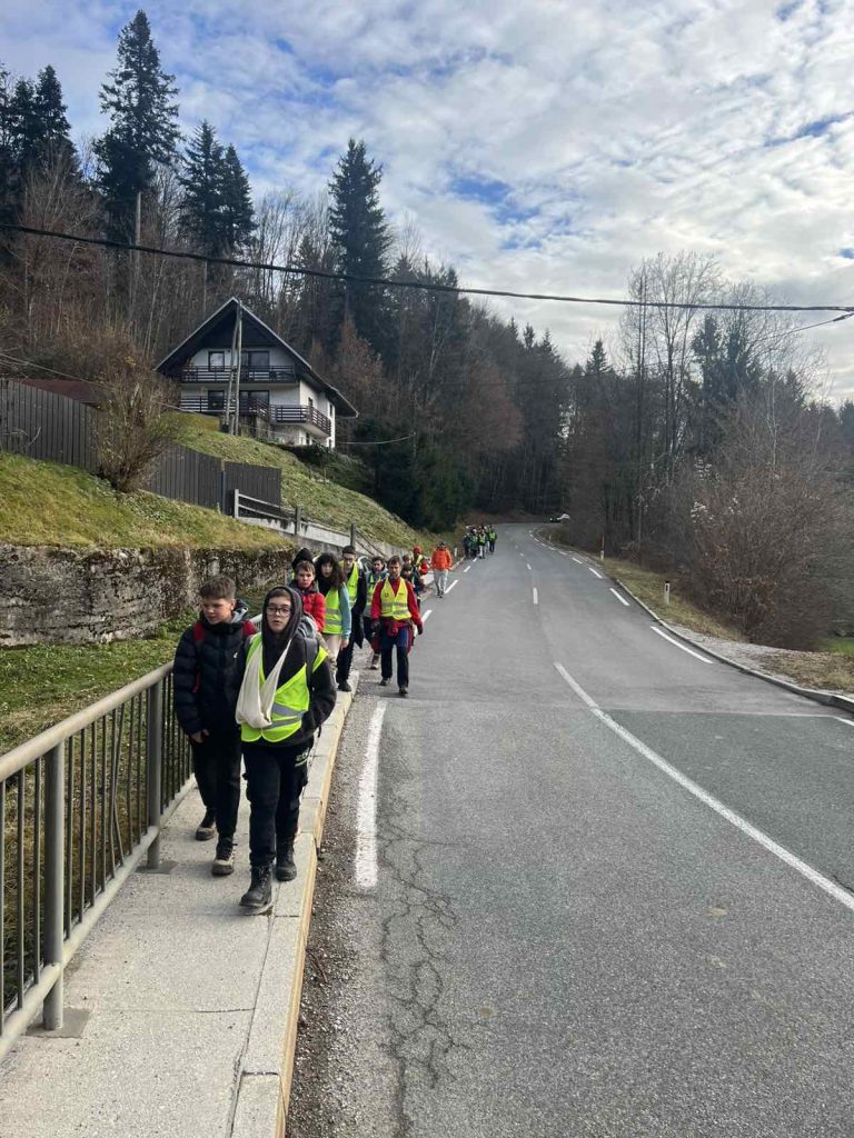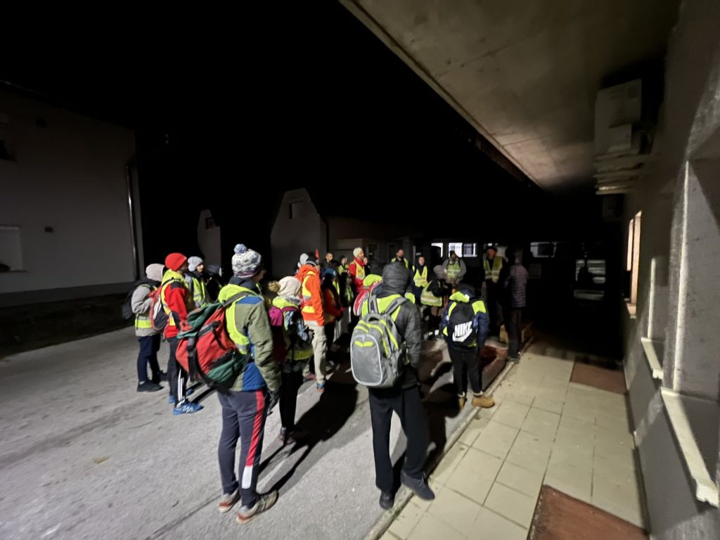 Ko je bila ura 4.15, sem se moral zbuditi in oditi na zajtrk. Odhod v Vrbo je bil ob 5.00, pred tem pa smo vsi skupaj poslušali Zdravljico oziroma slovensko himno. Ko smo šli na pohod, smo prej še dobili odsevnike. Odsevnike smo dobili zaradi varnosti, da se ne bi kdo izgubil ali ponesrečil. Velike odsevne luči so imeli samo trije vzgojitelji, da smo bili dobro vidni tudi mimoidočim. Vreme je bilo sicer zelo dobro, saj ni deževalo ali snežilo.