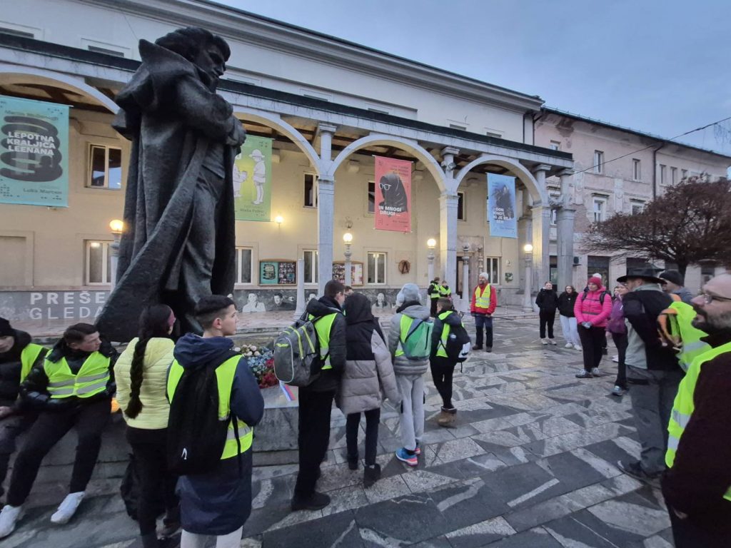 V Kranj smo prišli okoli 7.00. Najprej smo se ustavili pri spomeniku Franceta Prešerna v Kranju. Potem smo šli do Prešernovega muzeja in na koncu še do Prešernovega gaja, kjer sem imel govor. Pot nas je naprej vodila v Naklo, kjer smo pojedli malico. Tam nas je sprejel tudi ravnatelj Osnovne šole Naklo, g. Milan Bohinec. Po tem smo hodili do Posavca, kamor smo prispeli približno ob 12. 00. Tu smo imeli zasluženo kosilo.